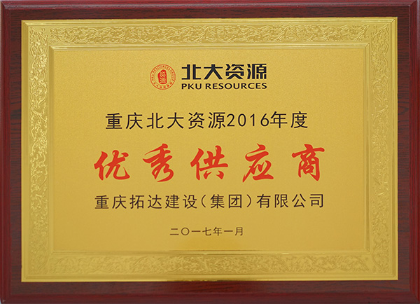 • 重慶北大資源2016年度優(yōu)秀供應商